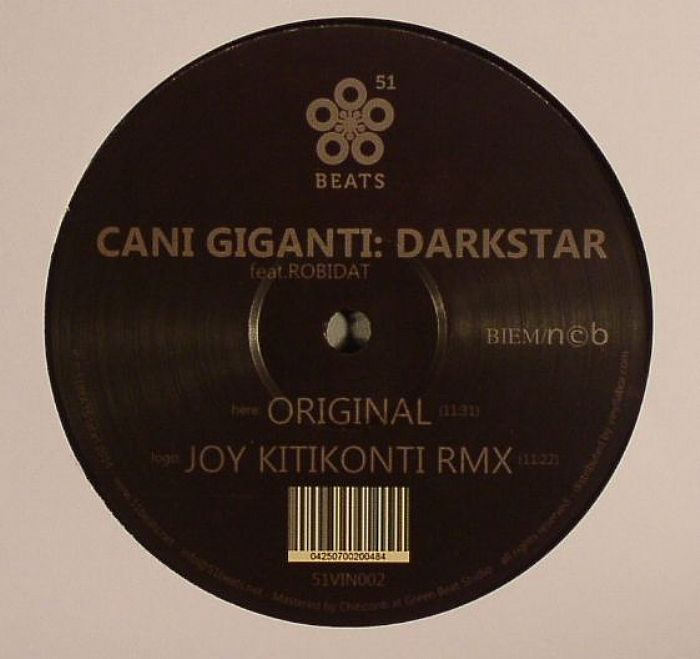 51 Beats released Darkstar on Tue Sep 09 2014. The 2 track Techno release features Cani Giganti, and Robidat.51 Beats has released vinyl by Cani Giganti, Robidat, and Idga.